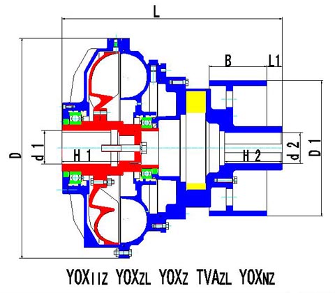 YOXIIZ型液力偶合器技术参数及安装尺寸: